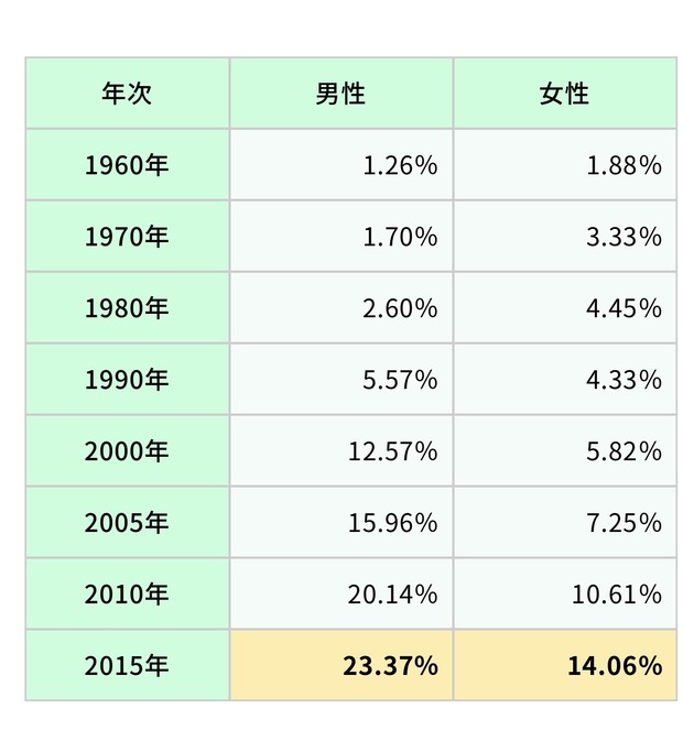 1997年 1960年~70年の生涯未婚率ヤバすぎて草 1 : 風吹けば名無し :2022/11/14(月) 13:47:11.31 ID:9Q8HiqcLd男性1%って…、100人いたら99人は...